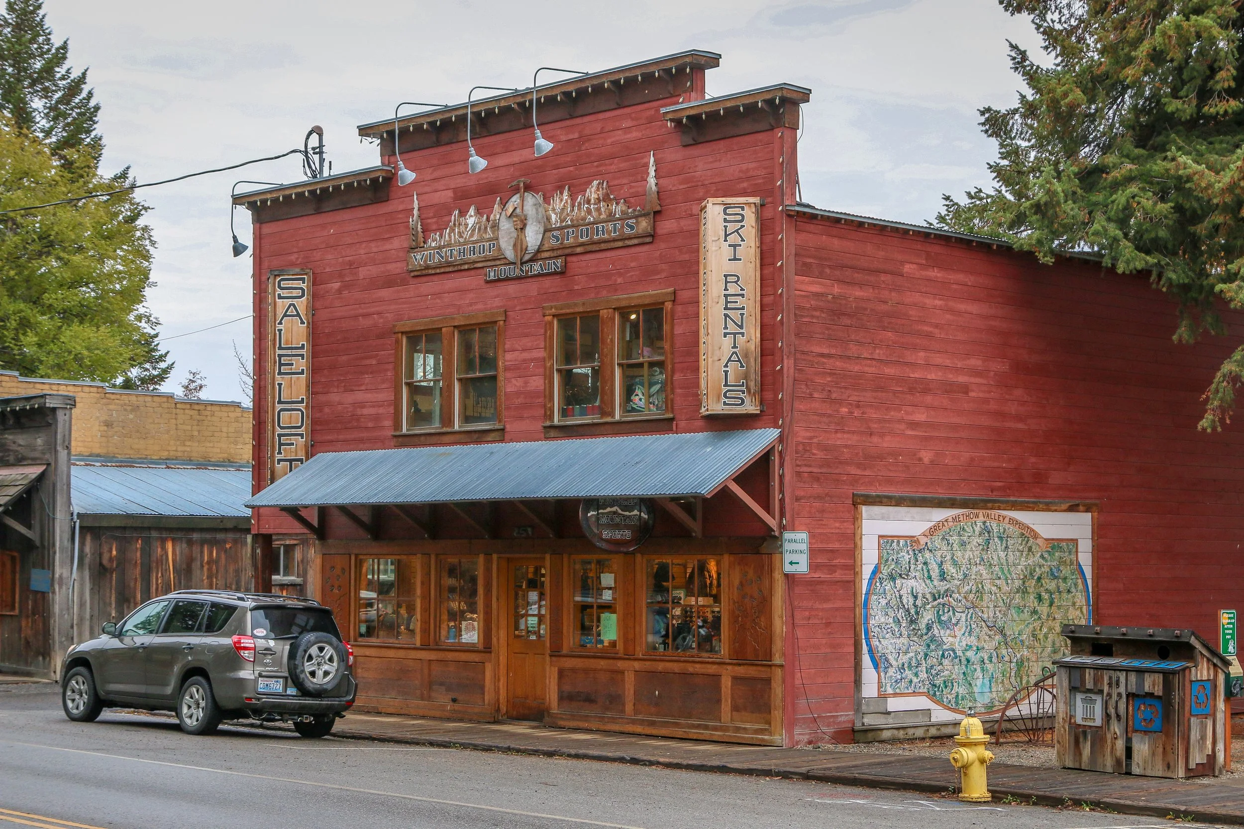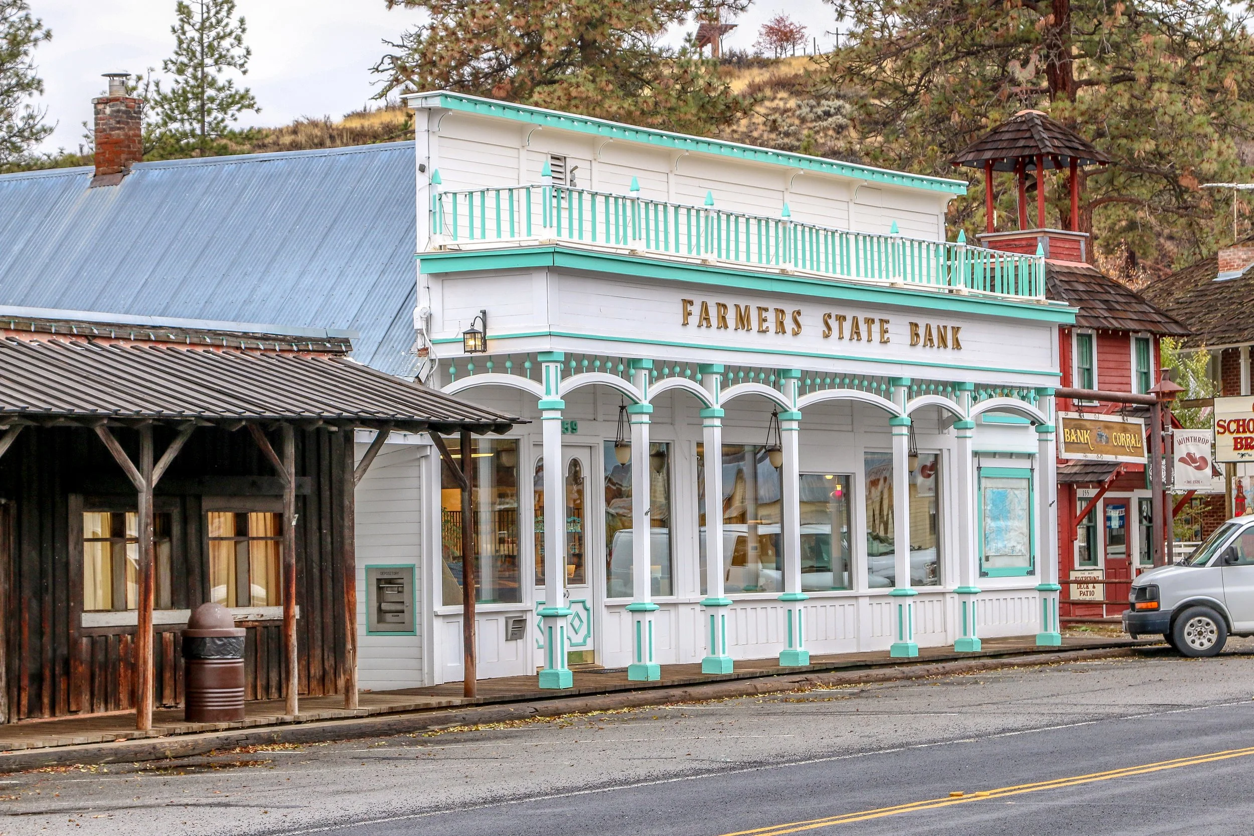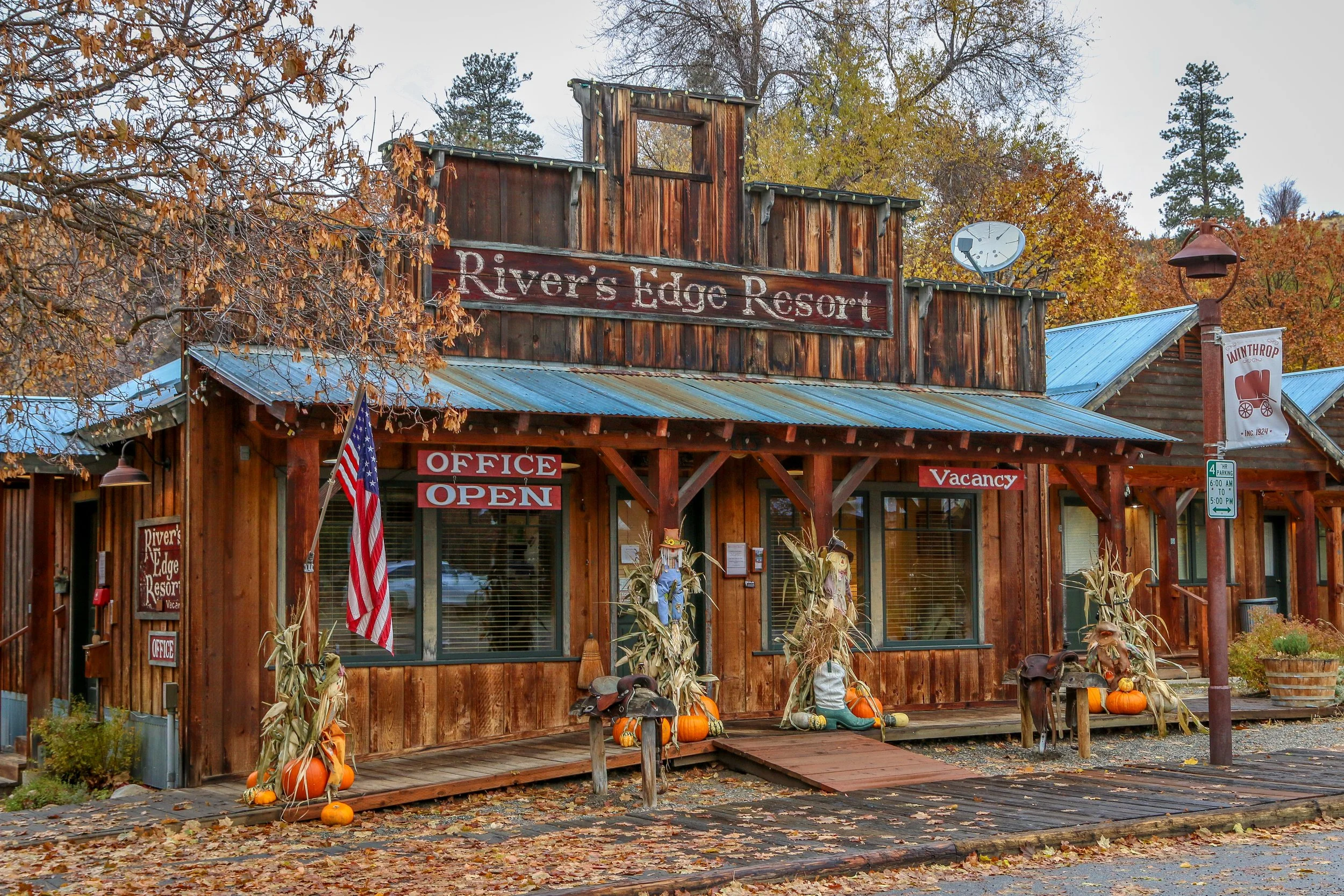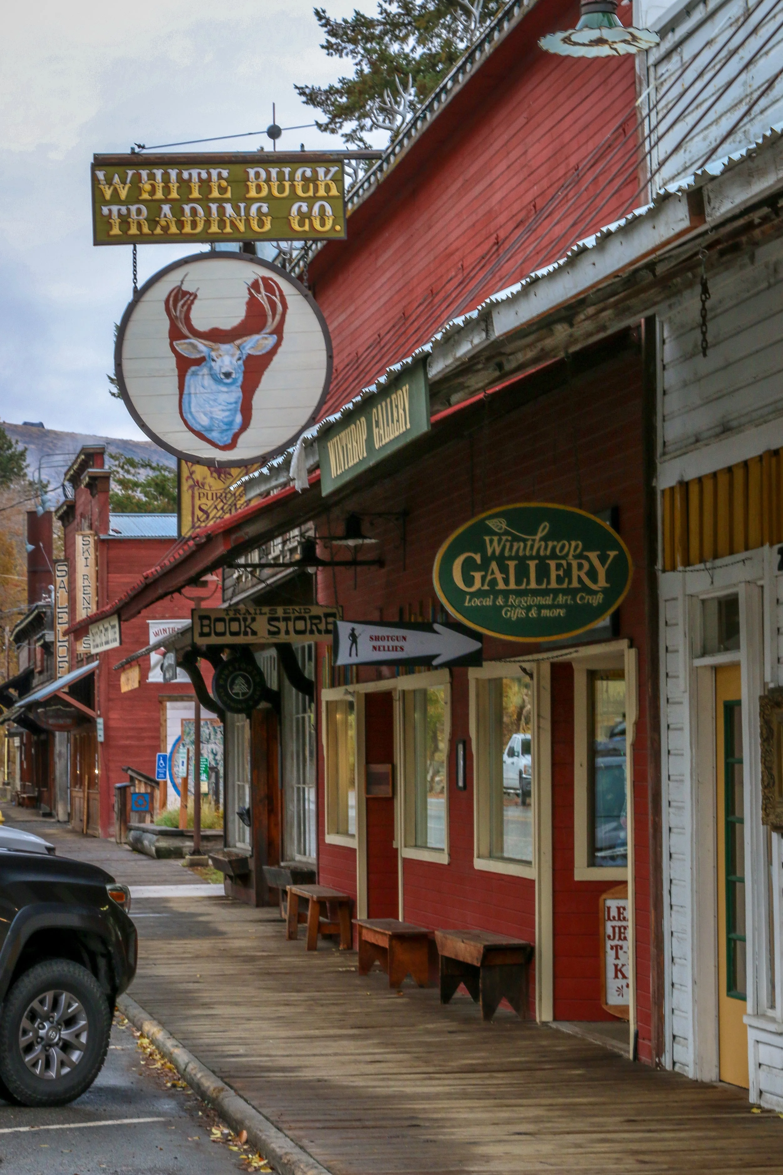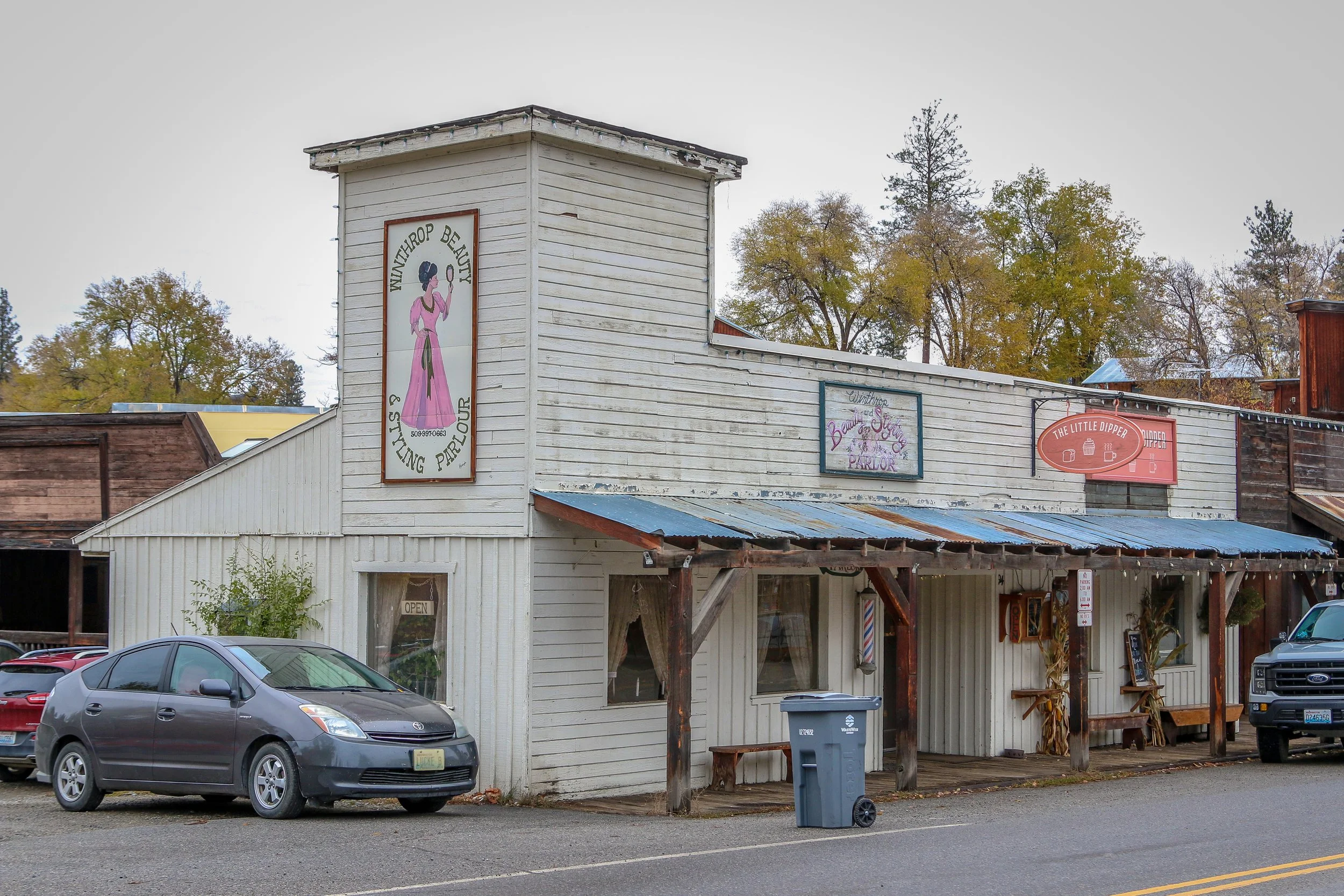 Winthrop is a great little Old West themed town on the east side of the North Cascade Mountains. The area was originally inhabited by the Methow People who made seasonal hunting and fishing camps along the Methow and Chewuch Rivers. In 1891, a man named Guy Waring, who had been a Harvard classmate of Theodore Roosevelt, made a homesteading claim at the confluence of the two rivers and established a trading post. As a town grew up around Waring’s store, they chose the name Winthrop after Major Theodore Woolsey Winthrop who had traveled extensively in Washington (and elsewhere) and was one of the first Union officers killed in the Civil War. Guy Waring irrigated the town, built a sawmill, started a cattle ranch and an apple farm and ran the Duck Brand Saloon in town (now Town Hall) before returning to the east in 1917. Winthrop carried on without him. The town was an early adapter to tourism with several dude ranches opening in the 1930s. When the road through the North Cascades was finally ready to open in 1972, the people of Winthrop adopted a plan to beautify the downtown area with an Old West theme. The result is a fun town that you have to simply have to stop and wander through. I had been to Winthrop before, several years ago, and was looking forward to checking it out again on this trip through. I love the architecture in Winthrop, especially the glistening white Farmers State Bank and the Old Schoolhouse Brewery. The Shafer Museum is also excellent and is mostly outdoors so it is accessible even outside of their business hours. I really enjoyed my stay in Winthrop and the cloudy skies helped portray how chilly it was there in late fall.