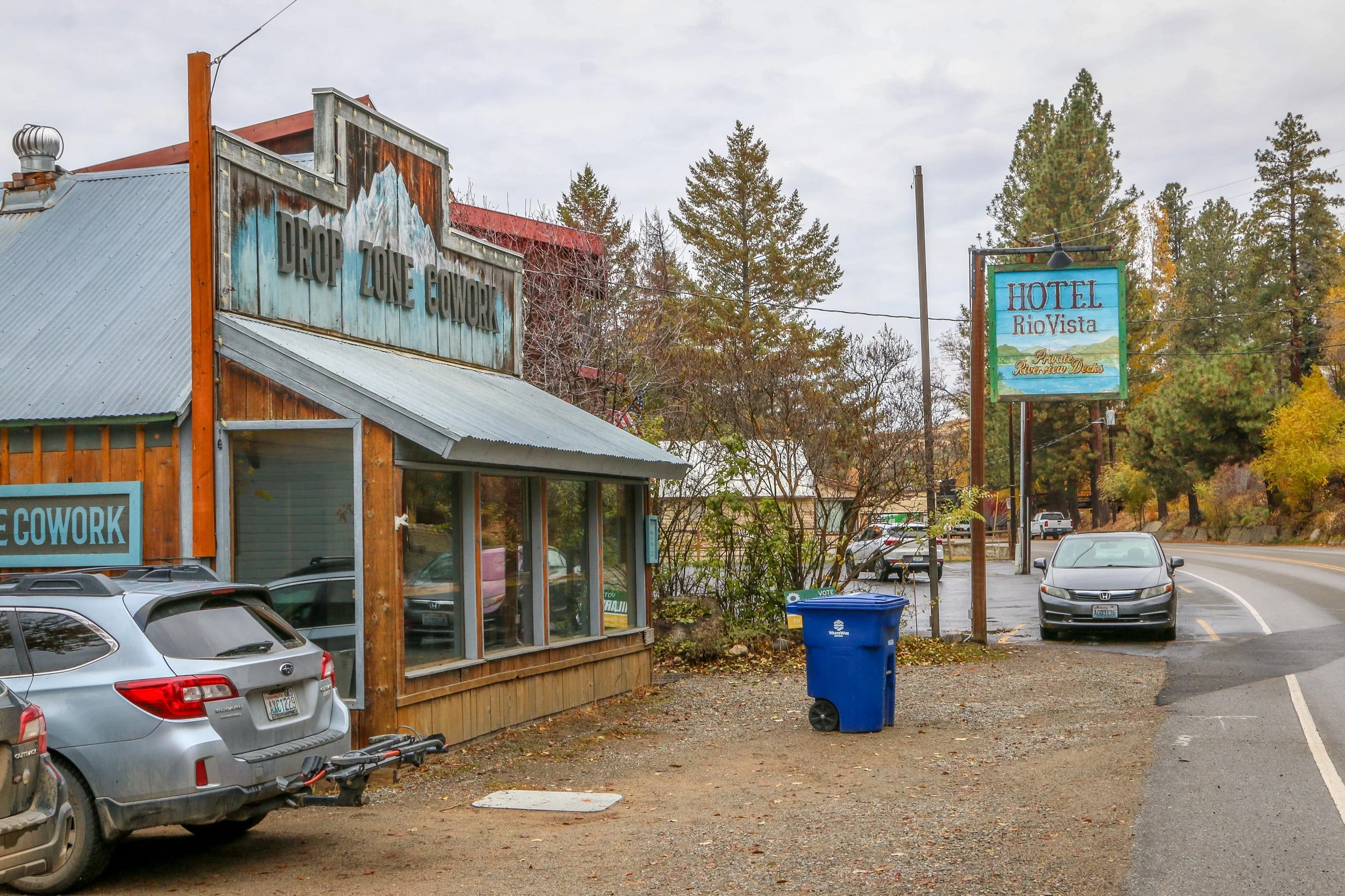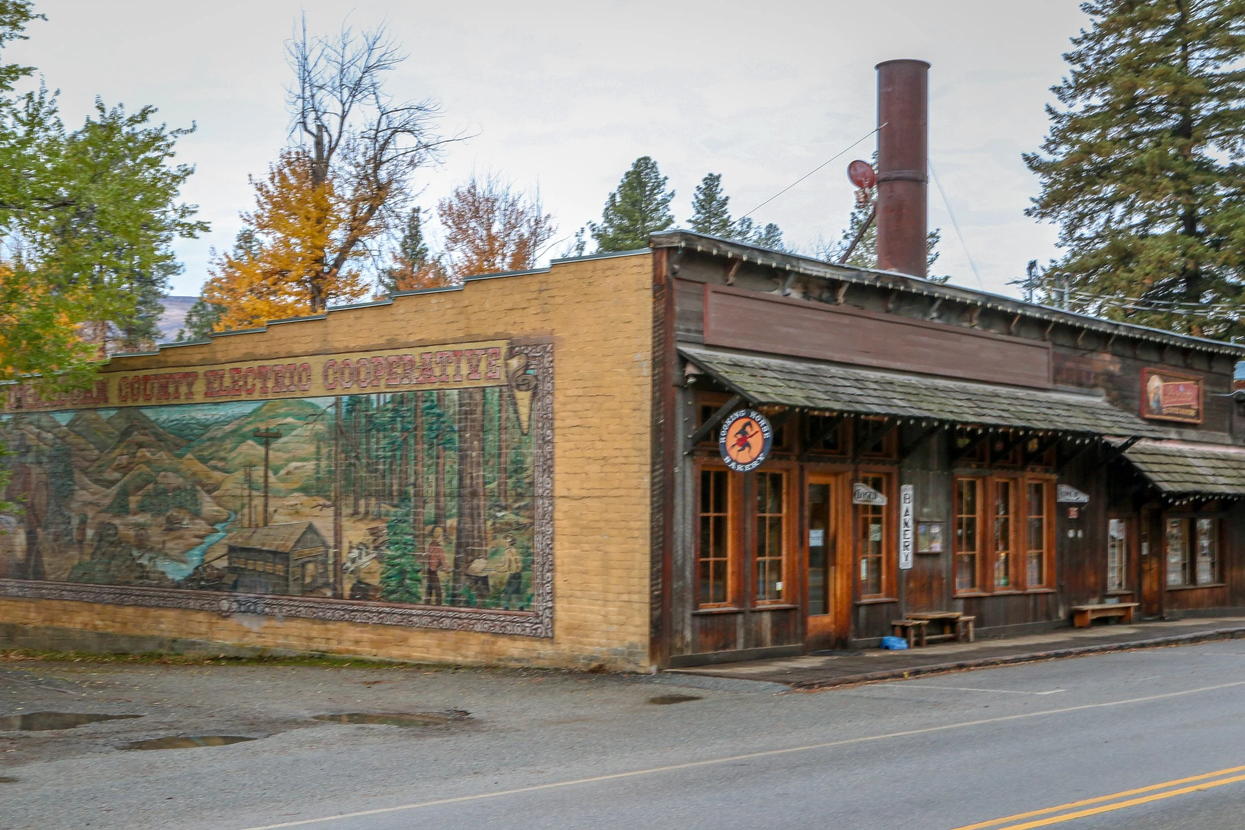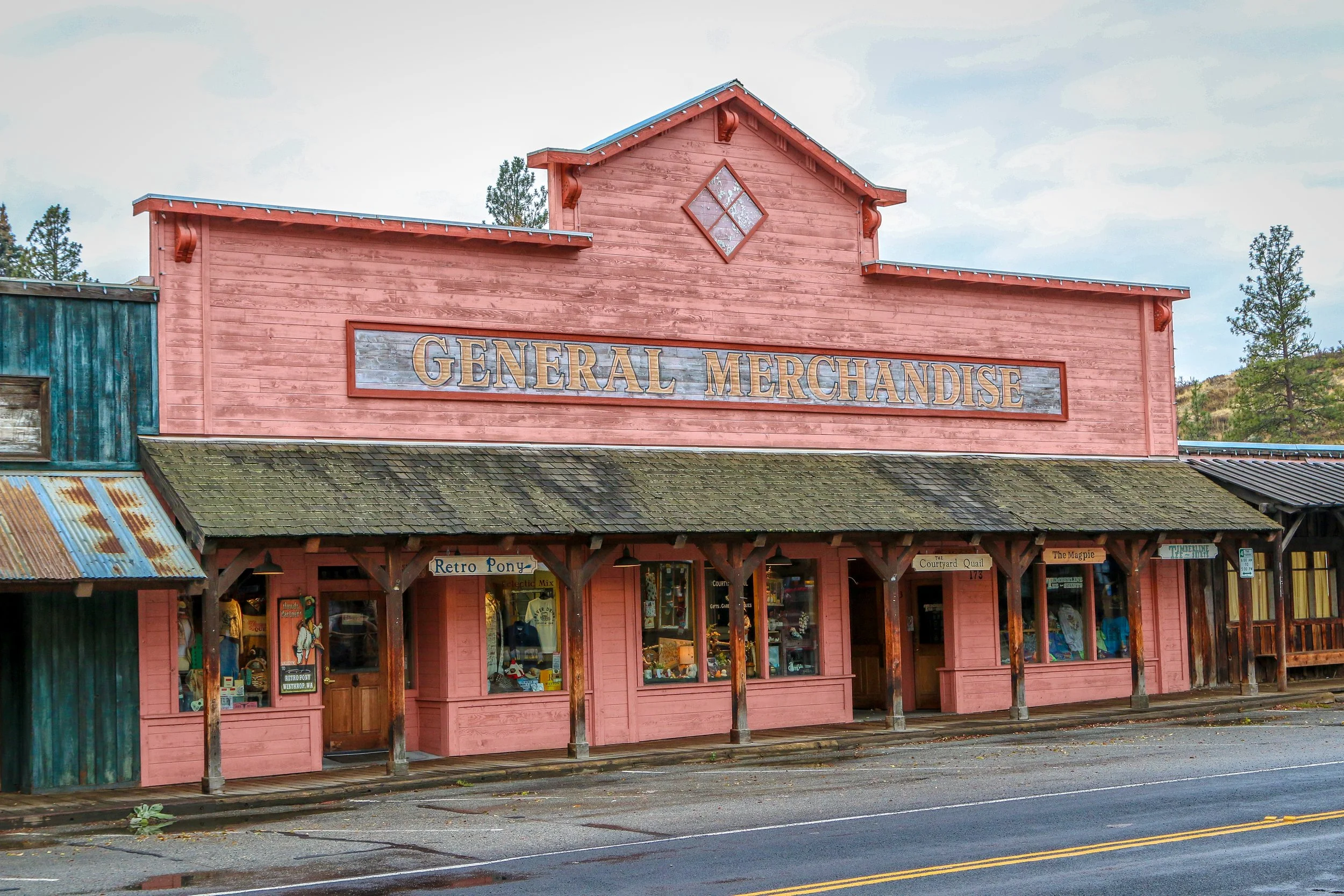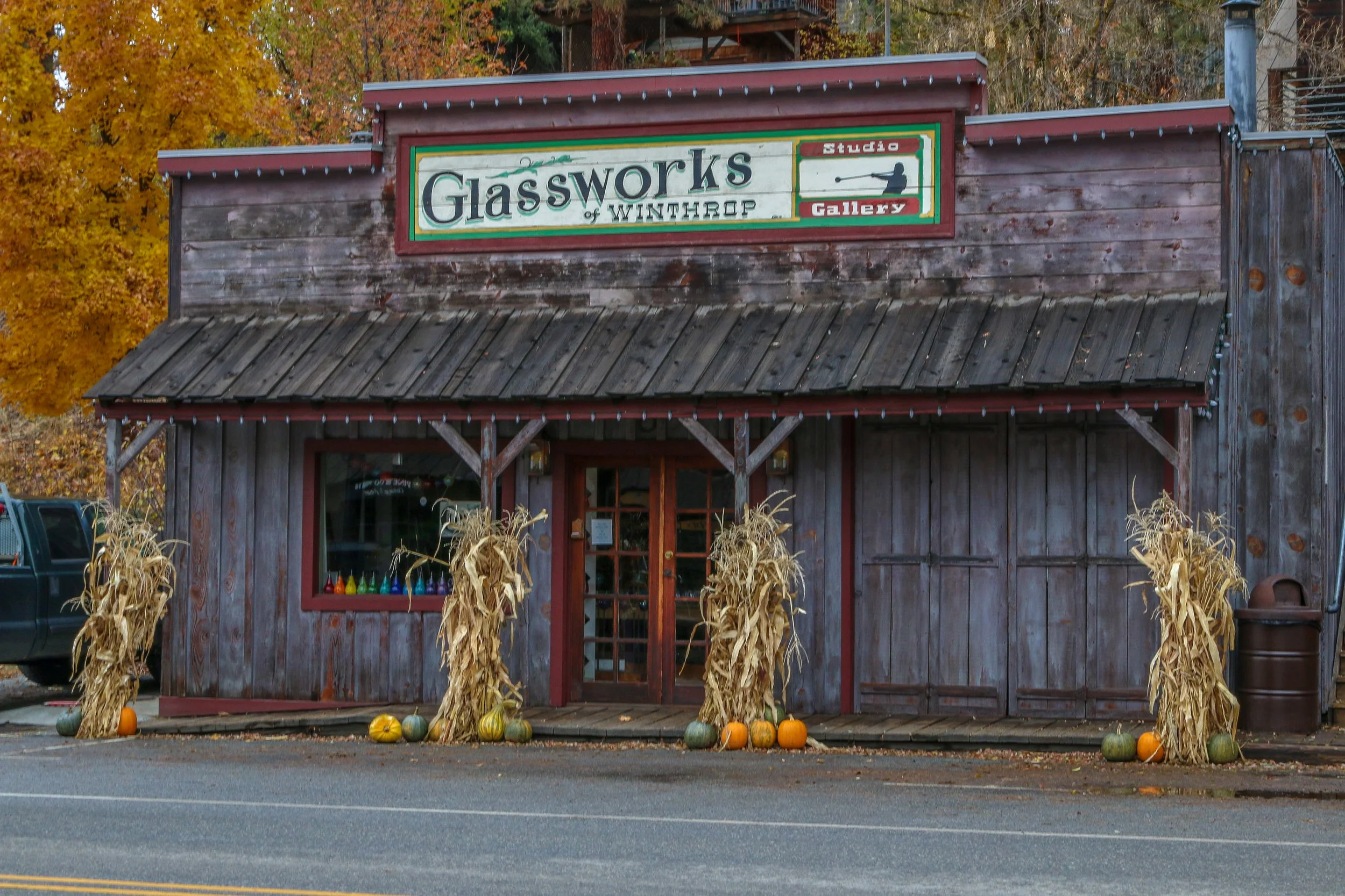 Winthrop is a great little Old West themed town on the east side of the North Cascade Mountains. The area was originally inhabited by the Methow People who made seasonal hunting and fishing camps along the Methow and Chewuch Rivers. In 1891, a man named Guy Waring, who had been a Harvard classmate of Theodore Roosevelt, made a homesteading claim at the confluence of the two rivers and established a trading post. As a town grew up around Waring’s store, they chose the name Winthrop after Major Theodore Woolsey Winthrop who had traveled extensively in Washington (and elsewhere) and was one of the first Union officers killed in the Civil War. Guy Waring irrigated the town, built a sawmill, started a cattle ranch and an apple farm and ran the Duck Brand Saloon in town (now Town Hall) before returning to the east in 1917. Winthrop carried on without him. The town was an early adapter to tourism with several dude ranches opening in the 1930s. When the road through the North Cascades was finally ready to open in 1972, the people of Winthrop adopted a plan to beautify the downtown area with an Old West theme. The result is a fun town that you have to simply have to stop and wander through. I had been to Winthrop before, several years ago, and was looking forward to checking it out again on this trip through. I love the architecture in Winthrop, especially the glistening white Farmers State Bank and the Old Schoolhouse Brewery. The Shafer Museum is also excellent and is mostly outdoors so it is accessible even outside of their business hours. I really enjoyed my stay in Winthrop and the cloudy skies helped portray how chilly it was there in late fall.