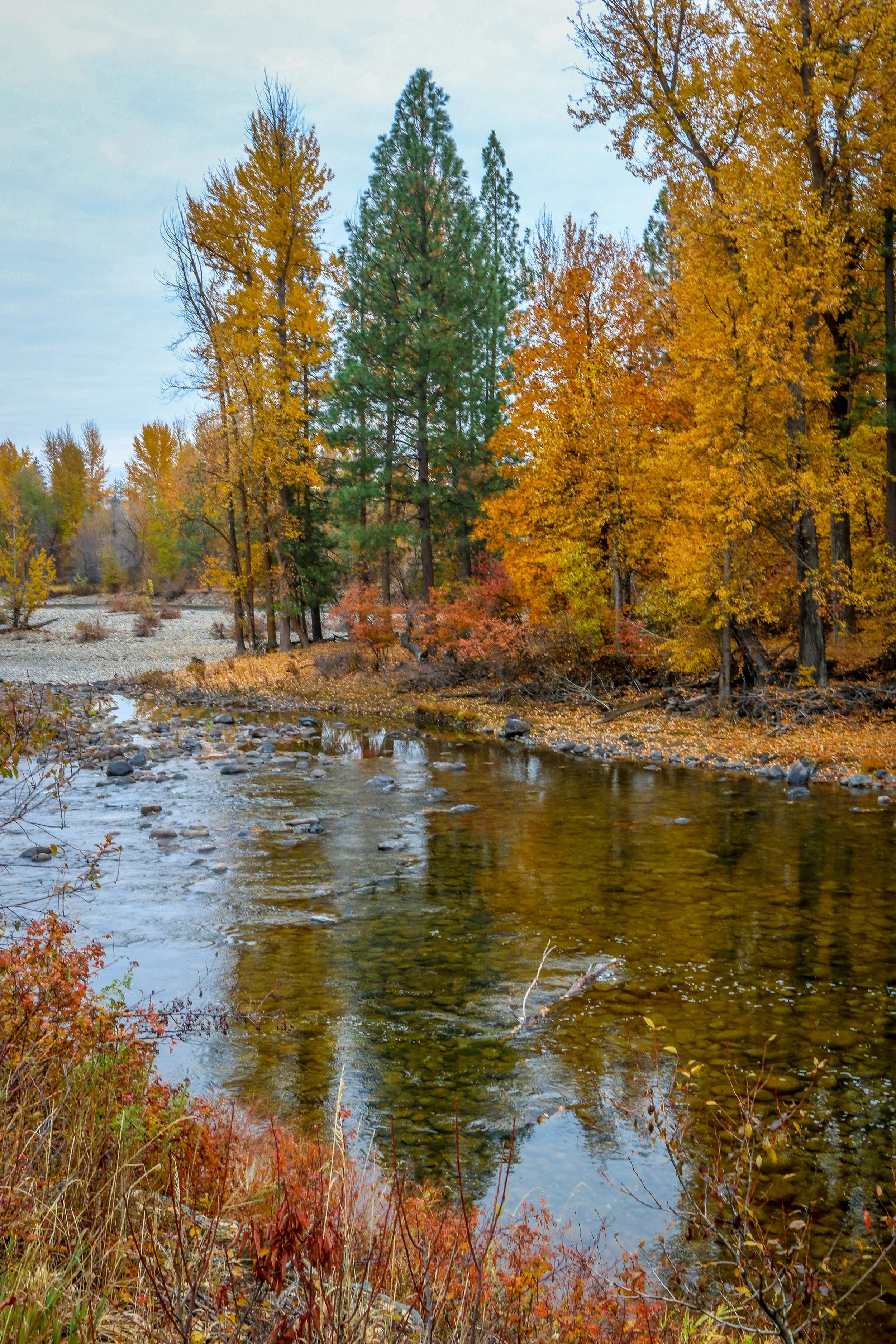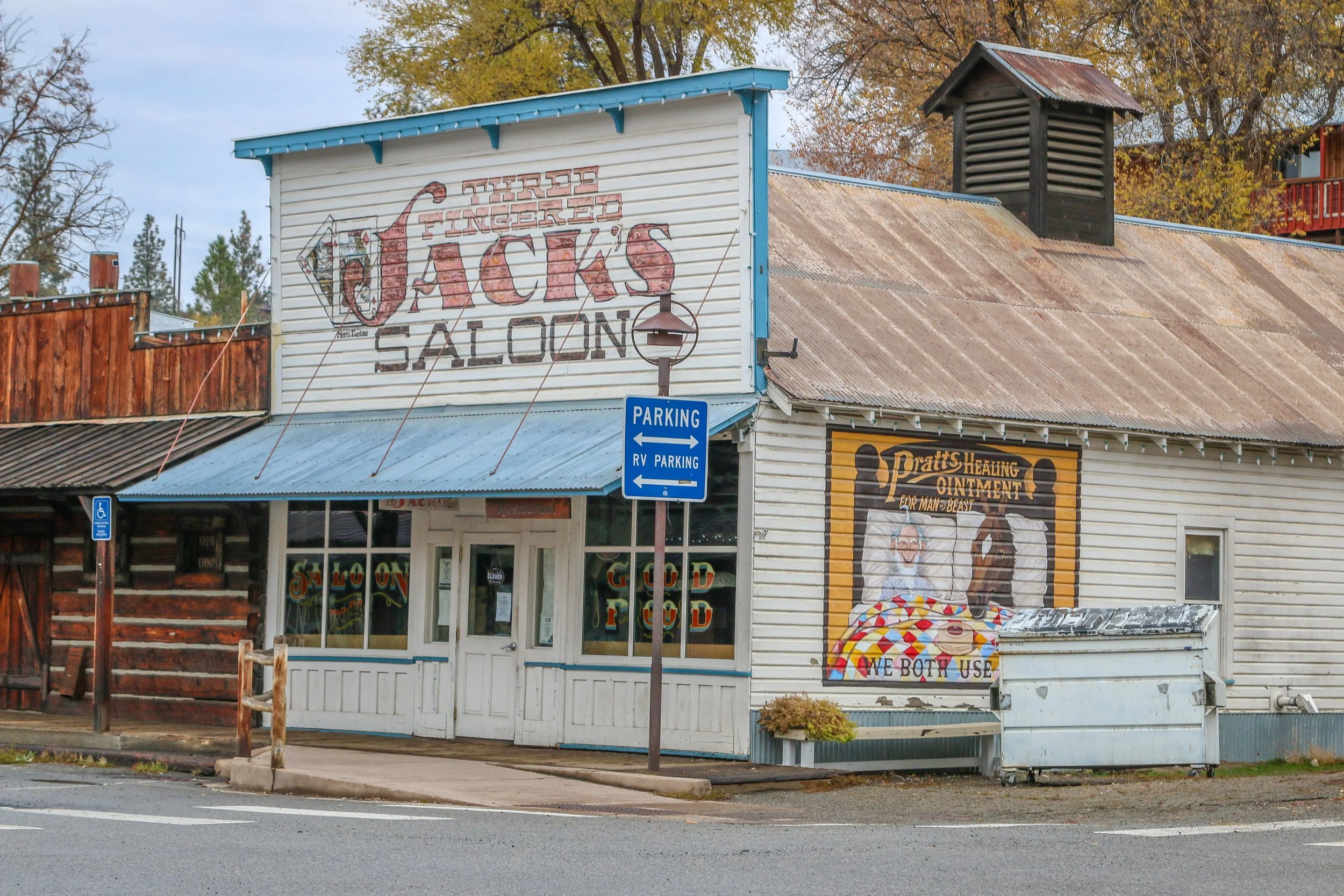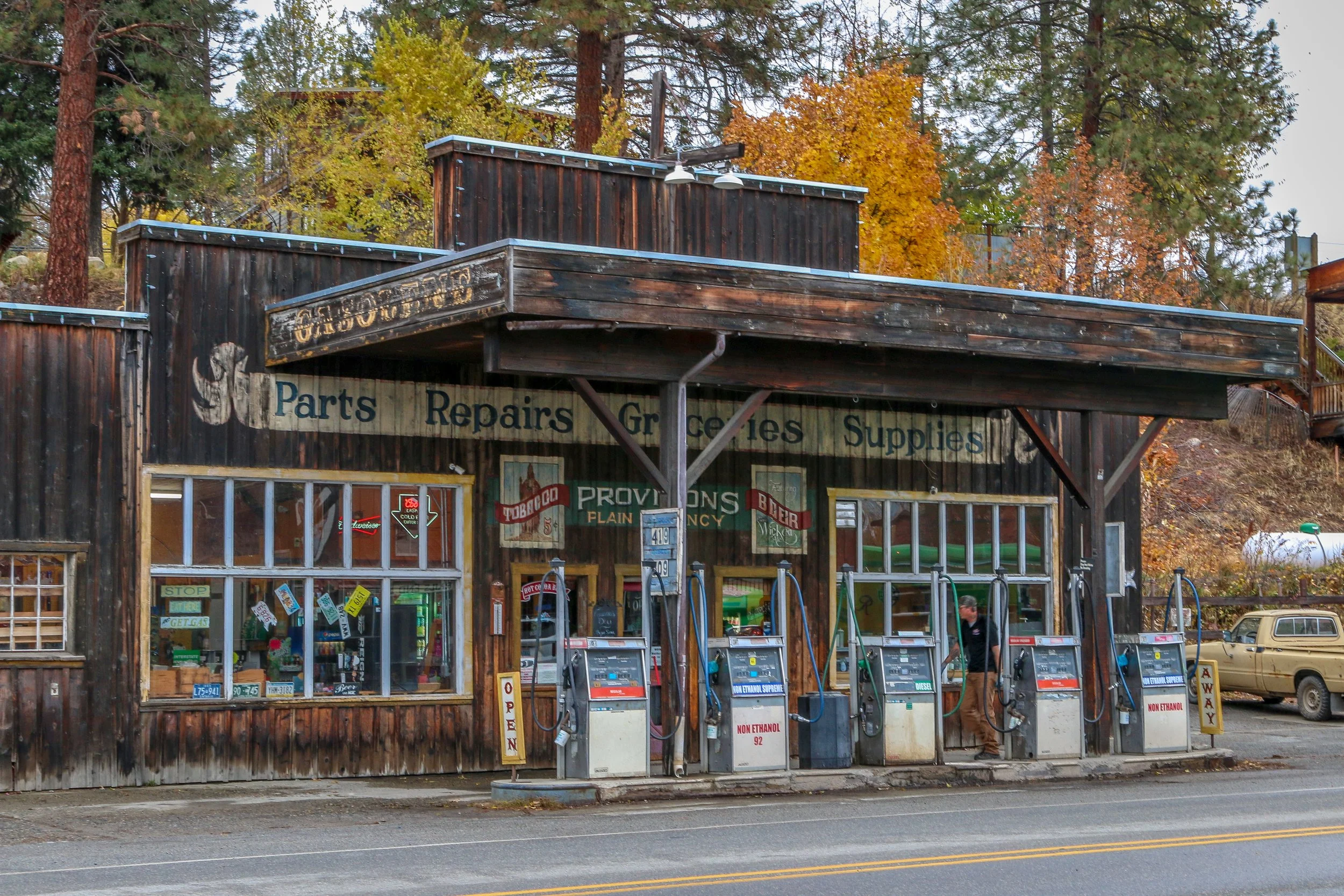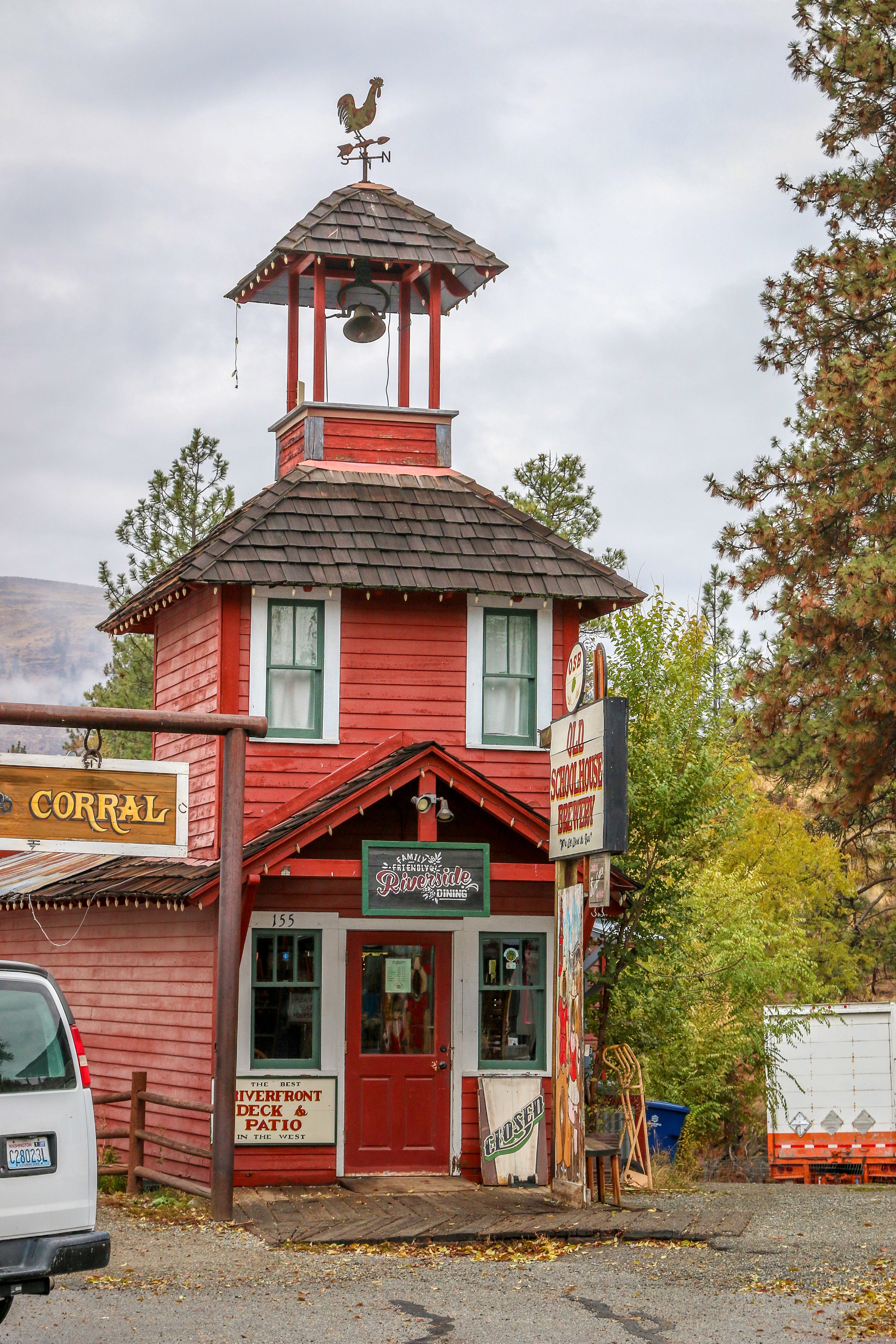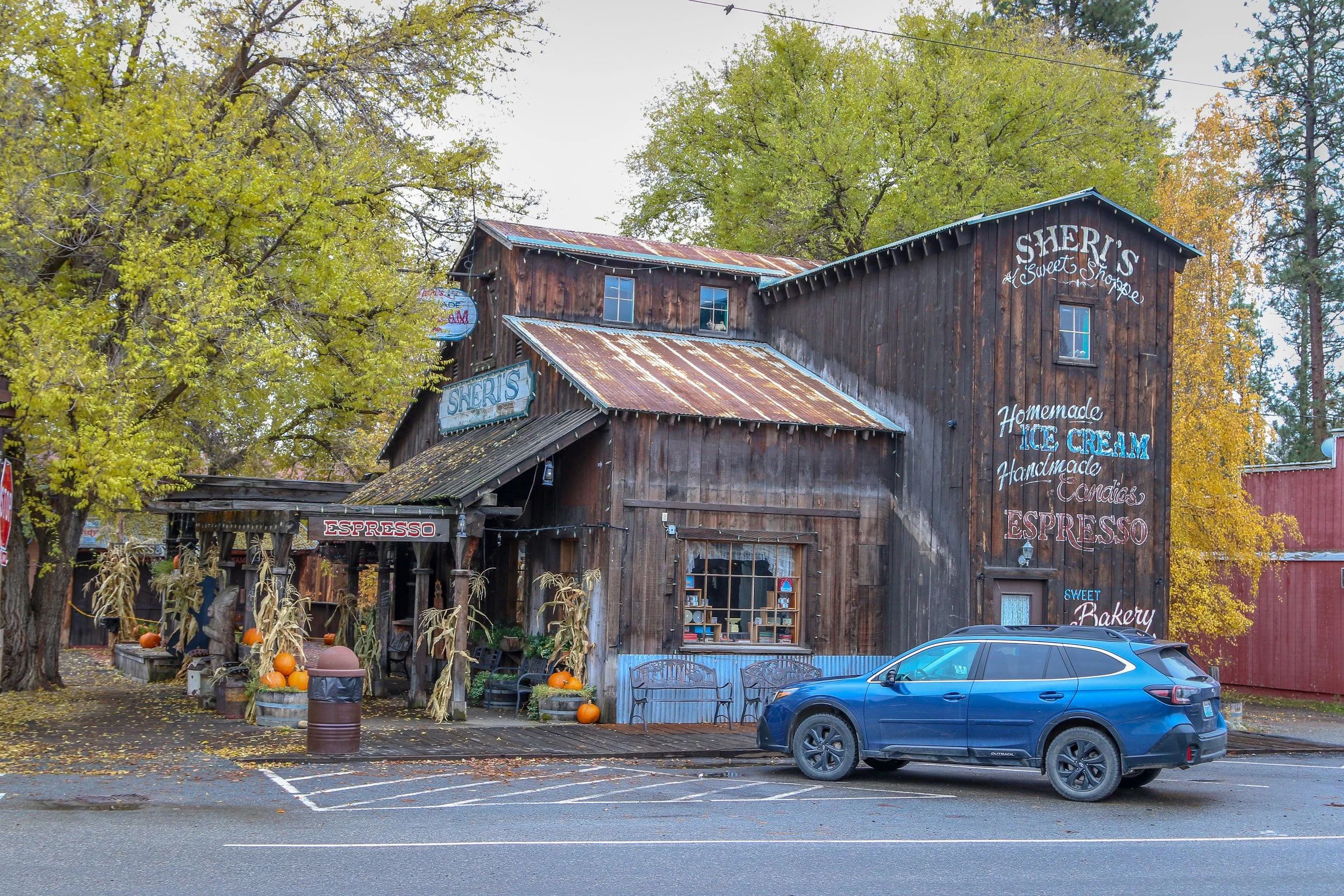 Winthrop is a great little Old West themed town on the east side of the North Cascade Mountains. The area was originally inhabited by the Methow People who made seasonal hunting and fishing camps along the Methow and Chewuch Rivers. In 1891, a man named Guy Waring, who had been a Harvard classmate of Theodore Roosevelt, made a homesteading claim at the confluence of the two rivers and established a trading post. As a town grew up around Waring’s store, they chose the name Winthrop after Major Theodore Woolsey Winthrop who had traveled extensively in Washington (and elsewhere) and was one of the first Union officers killed in the Civil War. Guy Waring irrigated the town, built a sawmill, started a cattle ranch and an apple farm and ran the Duck Brand Saloon in town (now Town Hall) before returning to the east in 1917. Winthrop carried on without him. The town was an early adapter to tourism with several dude ranches opening in the 1930s. When the road through the North Cascades was finally ready to open in 1972, the people of Winthrop adopted a plan to beautify the downtown area with an Old West theme. The result is a fun town that you have to simply have to stop and wander through. I had been to Winthrop before, several years ago, and was looking forward to checking it out again on this trip through. I love the architecture in Winthrop, especially the glistening white Farmers State Bank and the Old Schoolhouse Brewery. The Shafer Museum is also excellent and is mostly outdoors so it is accessible even outside of their business hours. I really enjoyed my stay in Winthrop and the cloudy skies helped portray how chilly it was there in late fall.