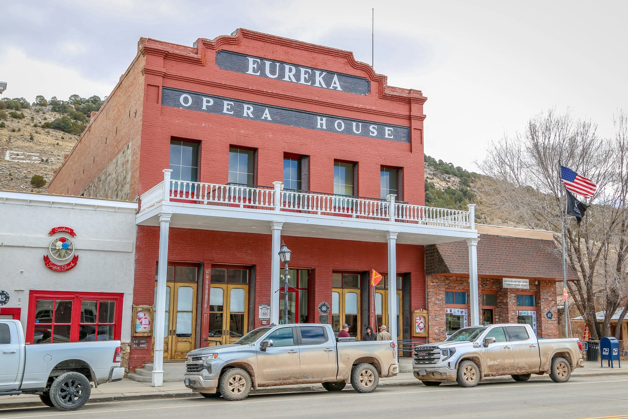 I strolled back to my van and then cruised on down the highway a ways before cutting down a dirt road to have a quick soak in the Spencer Hot Springs, a nice little oasis in the desert. While it is quite well-known and often busy, I had the main tub to myself when I was there which was nice. Feeling warm and relaxed, I continued on to the town of Eureka, a much more active mining community about an hour up the road. Eureka has a beautifully restored opera house, a nice county courthouse and a cool historic hotel (apparently also haunted). I stopped into the bar there for a quick drink and then drove out to the rest area just outside of town to cook up some dinner and do some reading before bed.