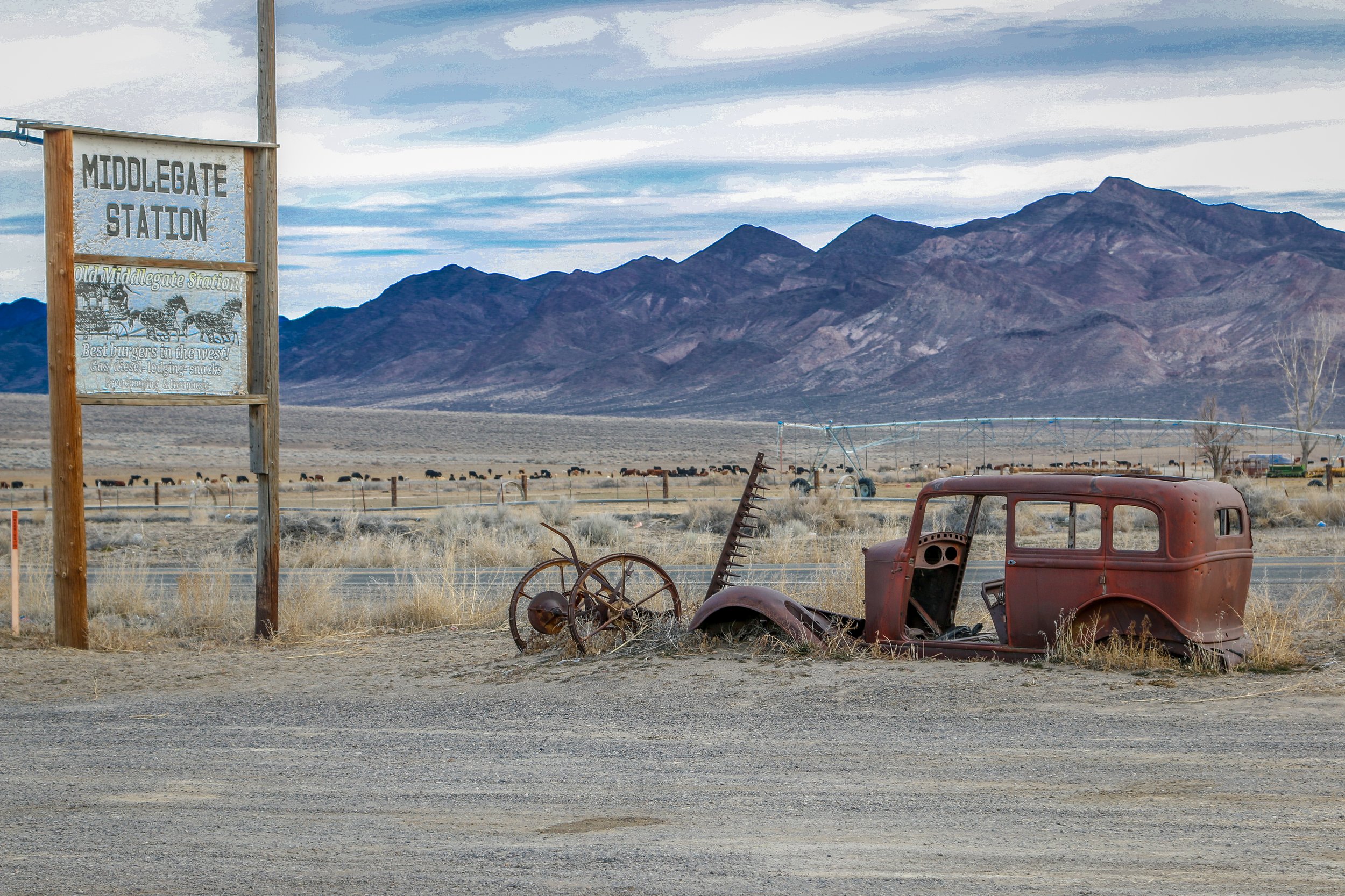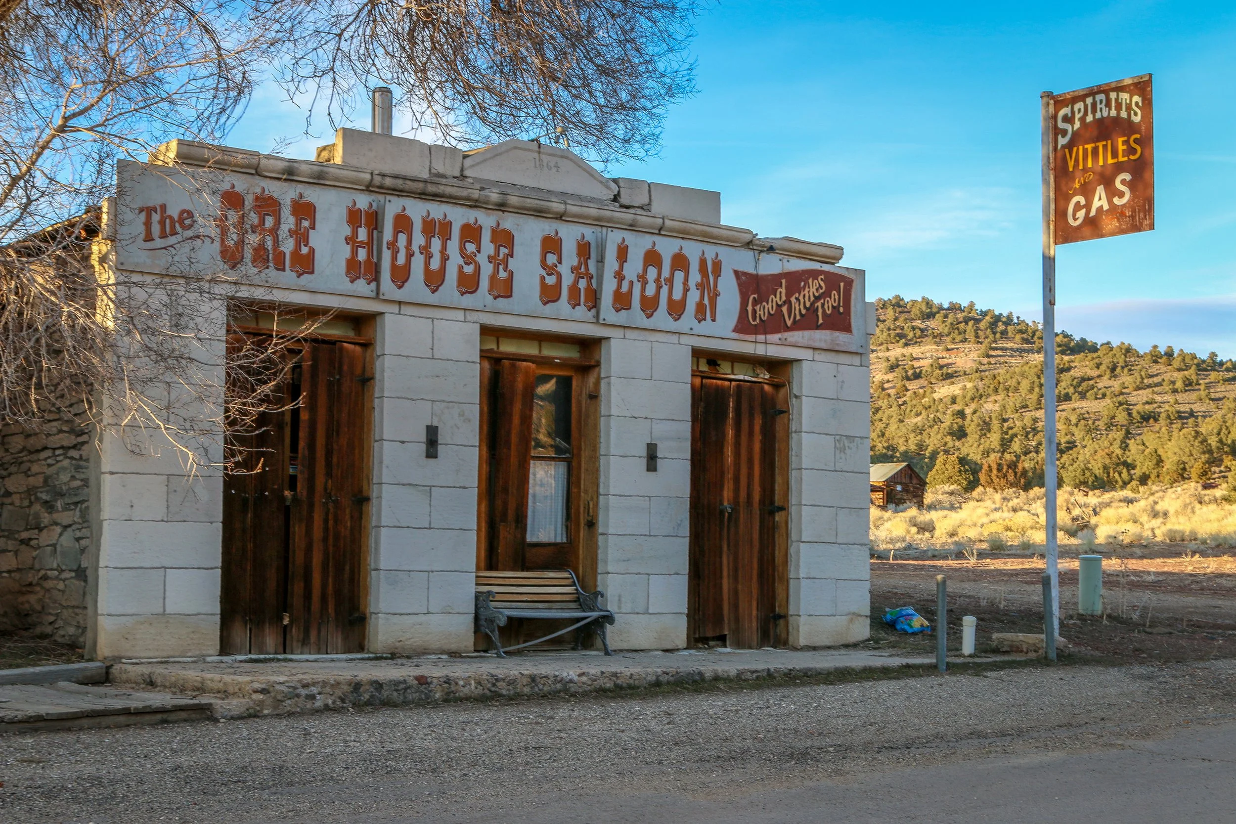 Leaving the park, I continued a little further on to the old town of Ione, “The Town That Refuses to Die”. There isn’t much out there, but it is a cool old town with some very photogenic old buildings. You must really enjoy the quiet life to live there as it’s pretty far from anywhere. It was getting late, so I backtracked towards the highway and got to Middlegate Station just before dark. Middlegate is a classic old roadhouse in the middle of nowhere and a favorite stop of mine along the way. They’ve always got a hot cup of coffee or a cold beer waiting for the weary traveler and there are usually good conversations to be had there as well. You’re also welcome to park there overnight for free which is a definite bonus. They make a good burger, too, and I certainly enjoyed my night out there in the boonies. The stars were amazing.