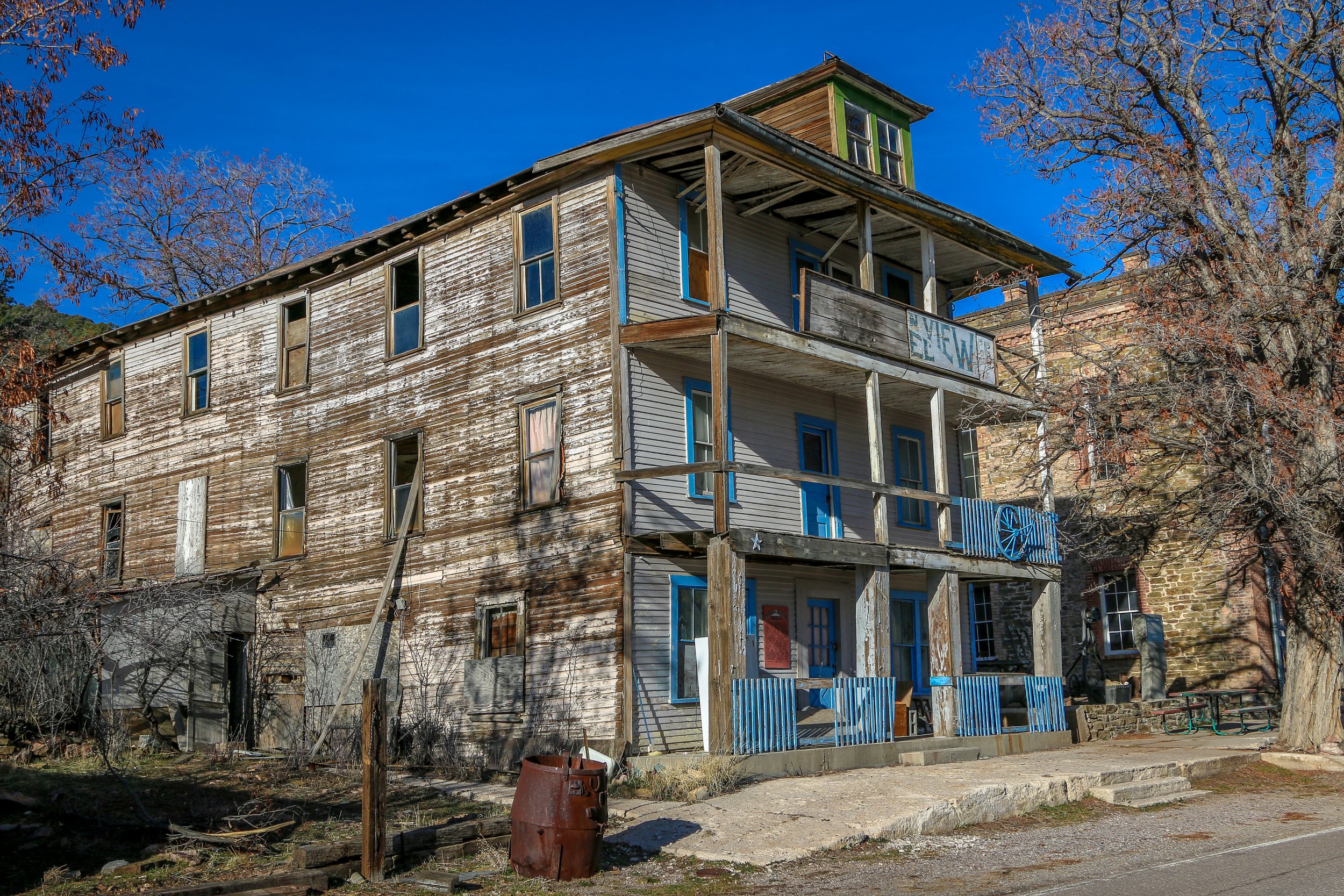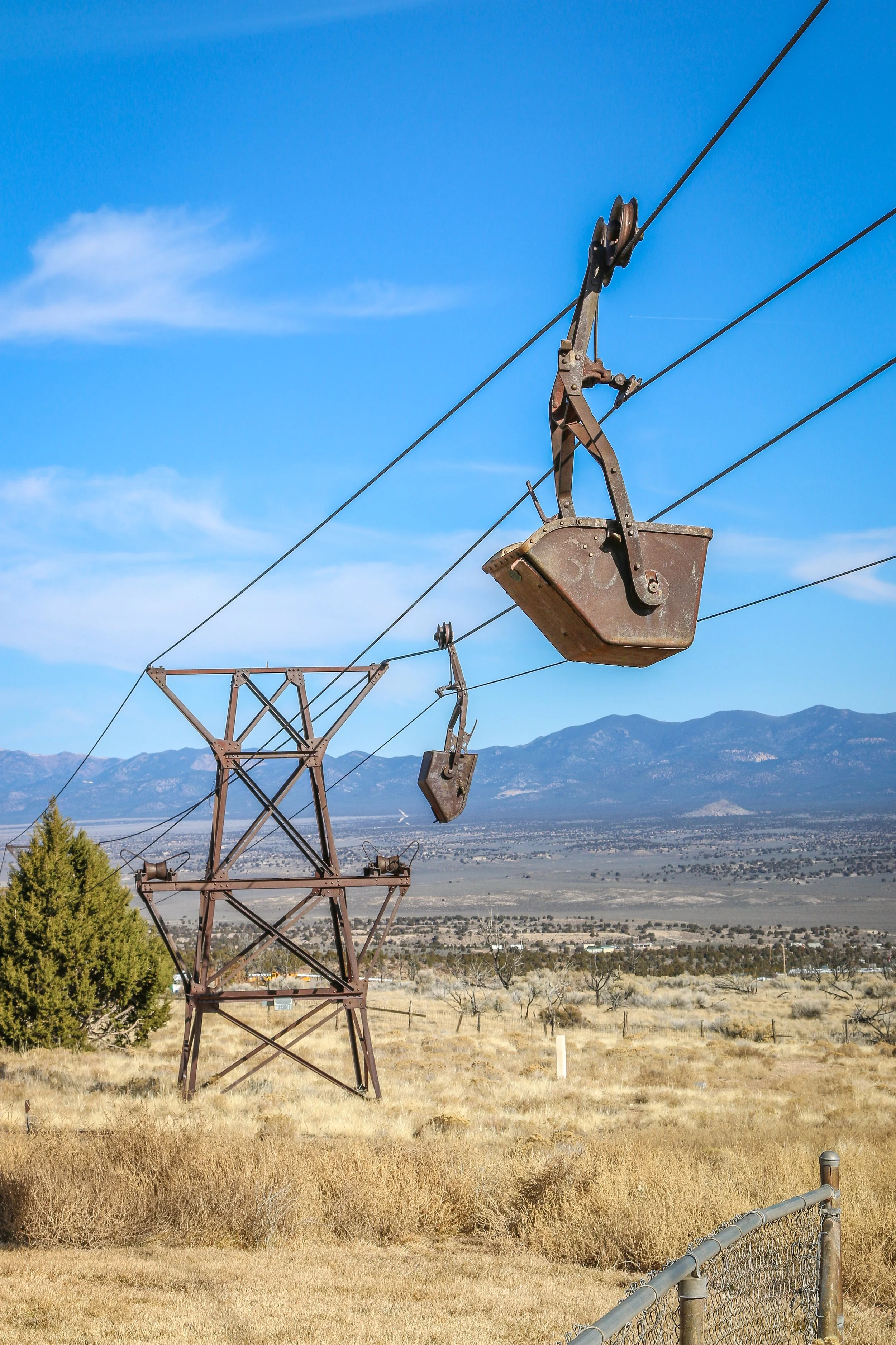 I had a quiet night out in the free RV park and got up early the next morning to take some photos and wander around town for a while. There was a little diner called the Silver Café, and I decided to stop in for breakfast. It had a counter to sit at and I knew that if I watched the parking lot for some old pickup trucks to pull in that I could sit there with some old men from town who probably ate there every morning (or certainly every Saturday morning). I wasn’t disappointed and I enjoyed my breakfast while listening in on the latest gossip from around town. After breakfast I hiked up the hill to where they once loaded ore into buckets which were pulled down to the stamp mill mostly by gravity. The whole contraption is still there, including the wires and buckets which I thought was exceptionally cool. From there I wandered out to the cemetery for a bit and then headed on out of town.