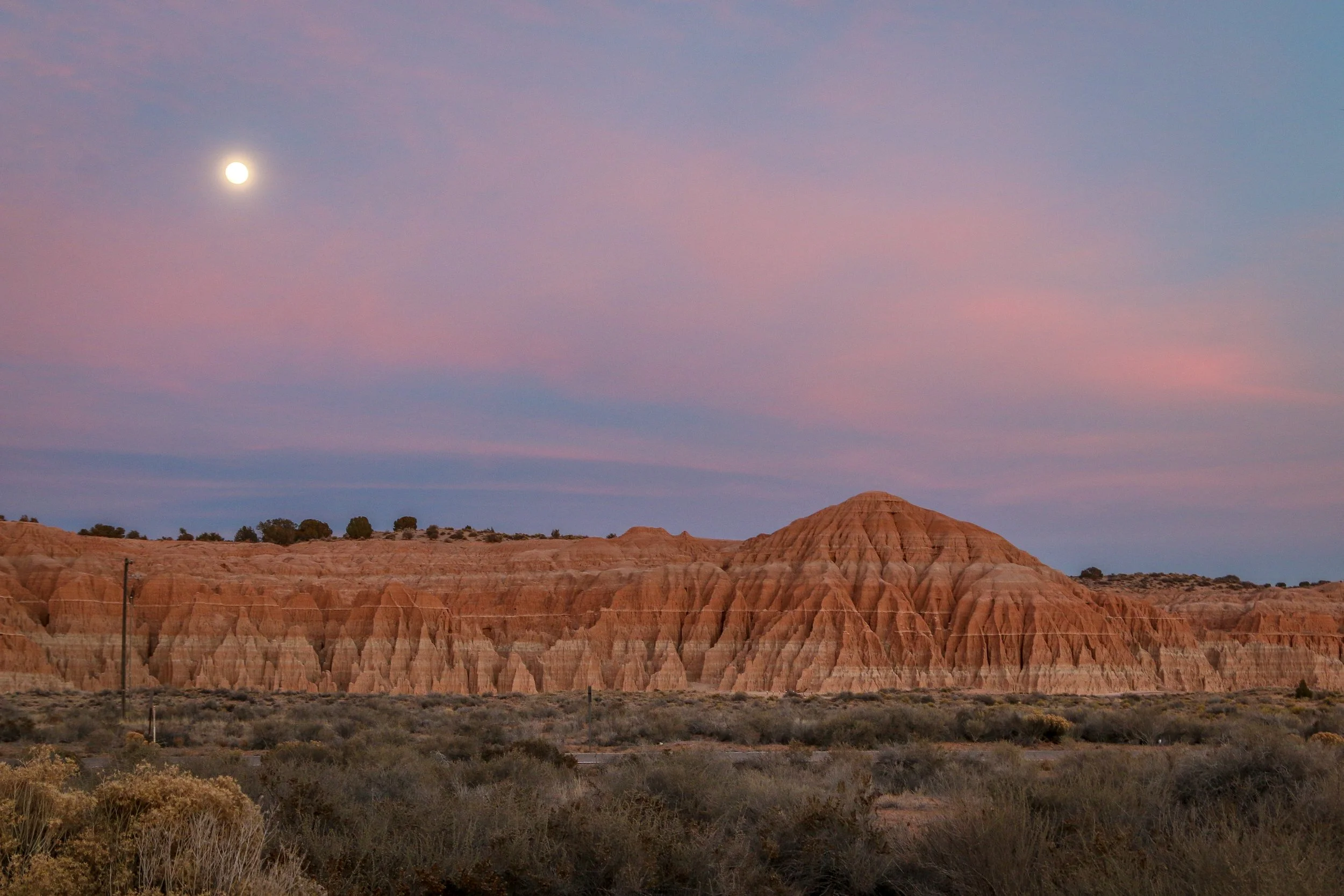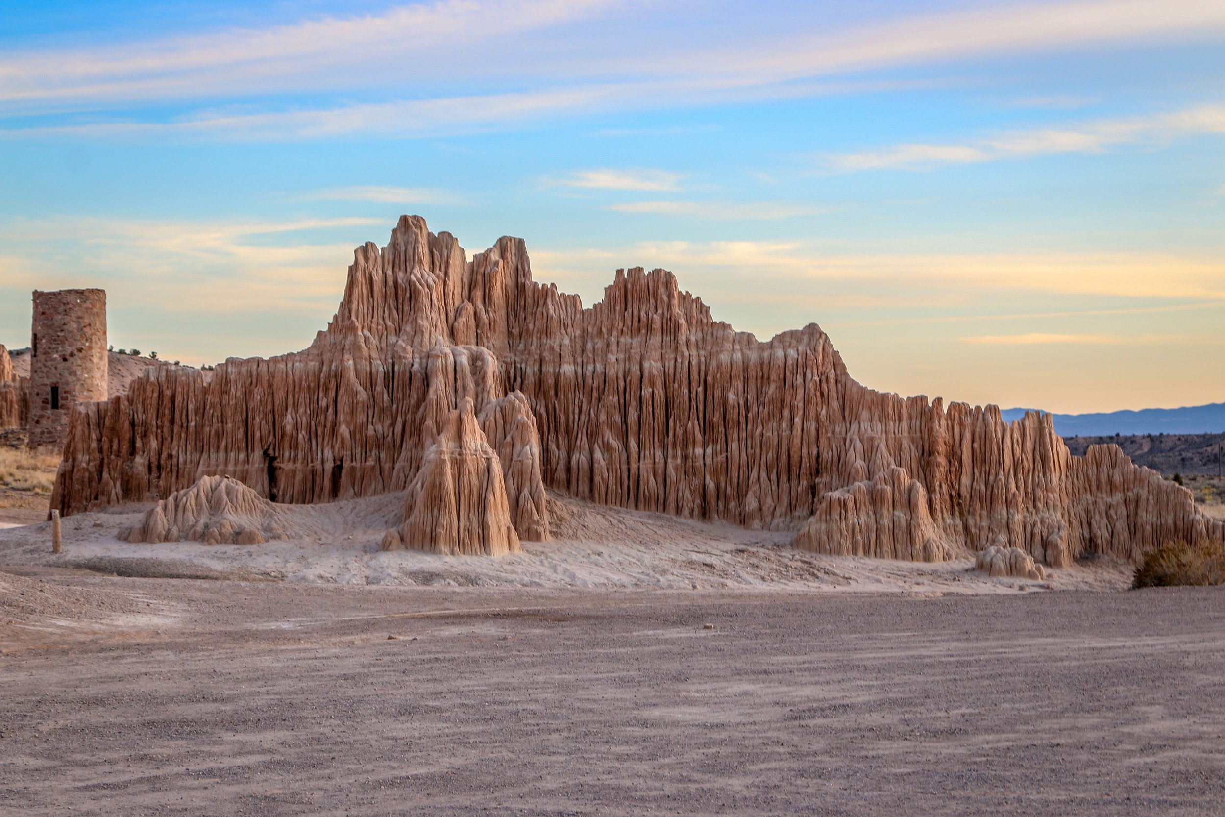 From Pioche, I made my way out to Echo Canyon State Park which is about 15 minutes down the road. Mostly centered around the Echo Canyon Dam which irrigates the area and allows local farmers to grow alfalfa, the park also has a nice little 3 mile hike up into the hills which eventually drops back into Echo Canyon itself. It was a beautiful afternoon and it was so nice to get out and stretch my legs for a bit and I pretty much had the whole place to myself. After my hike I continued down the highway to Cathedral Gorge, definitely the centerpiece of eastern Nevada’s state parks. Ash from a volcanic eruption 5 million years ago settled into this area of the state. Much more recently, a freshwater lake formed, and silt settled to the bottom. Over time, the lake would drain away and erosion would expose these layers of silt and ash in the beautiful formations of Cathedral Gorge. It’s quite a striking place and I got there in enough time to get set up in the campground and get out and take some photos of the formations before the sun went down. It was pretty special out there at that time of day, especially when the near-full moon rose just as the sun was setting. It had been quite a busy day and it was nice to drift off to sleep surrounded by the beautiful formations of Cathedral Gorge.