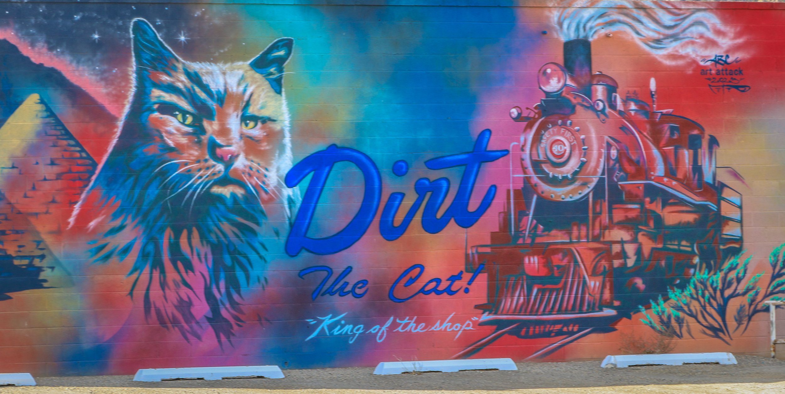 On Friday I wanted to see a few things around town before I took off. I started my day at the Nevada Northern Railway museum in the old East Ely train depot (and yes, surprisingly that meant there were once two stations in town). Ely’s existence as anything more than a stagecoach stop is mostly due to the copper which came out of the nearby mountains starting in 1906. This was right around the time when electricity was becoming more widely used around the country and the forward-thinking men in Ely thought that it would be worth the expense of extracting it. As a result, many older homes around the U.S. probably have wires in them made of copper from White Pine County, Nevada. The need to bring supplies in and copper out necessitated a railroad at that time and the Nevada Northern was born. There are some cool old trains at the depot and a lot of interesting information on the railroad and the town. Perhaps most interesting is the grave of a cat named Dirt who was apparently much beloved around the depot. There’s also a mural remembering Dirt not too far down the road.