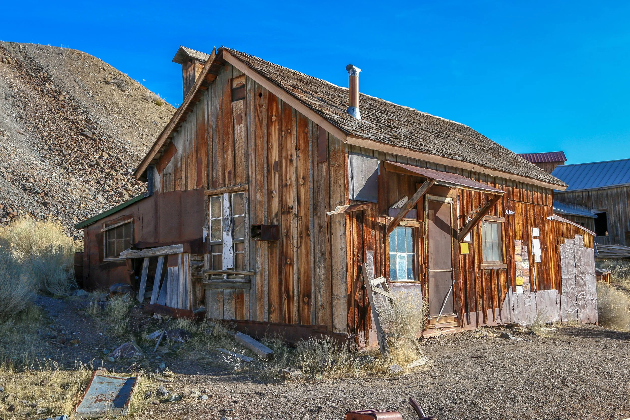 Berlin was established as a mining town in 1897 by German prospectors who named the town after the city in their native homeland. It had a small decade-long boom cycle but declined quickly after the Panic of 1907. By 1911 Berlin was virtually a ghost town and would begin to deteriorate. The land was acquired by the State of Nevada in 1970 to become part of Berlin-Ichthyosaur State Park. Since it was acquired, volunteers have stabilized the buildings and replaced the roofs and now it sits in a state of “arrested decay”. There are some great old buildings to see in Berlin, especially the massive stamp mill. I hope you enjoy these photos from the tiny old goldmining ghost town of Berlin, Nevada - definitely a cool place to see.
