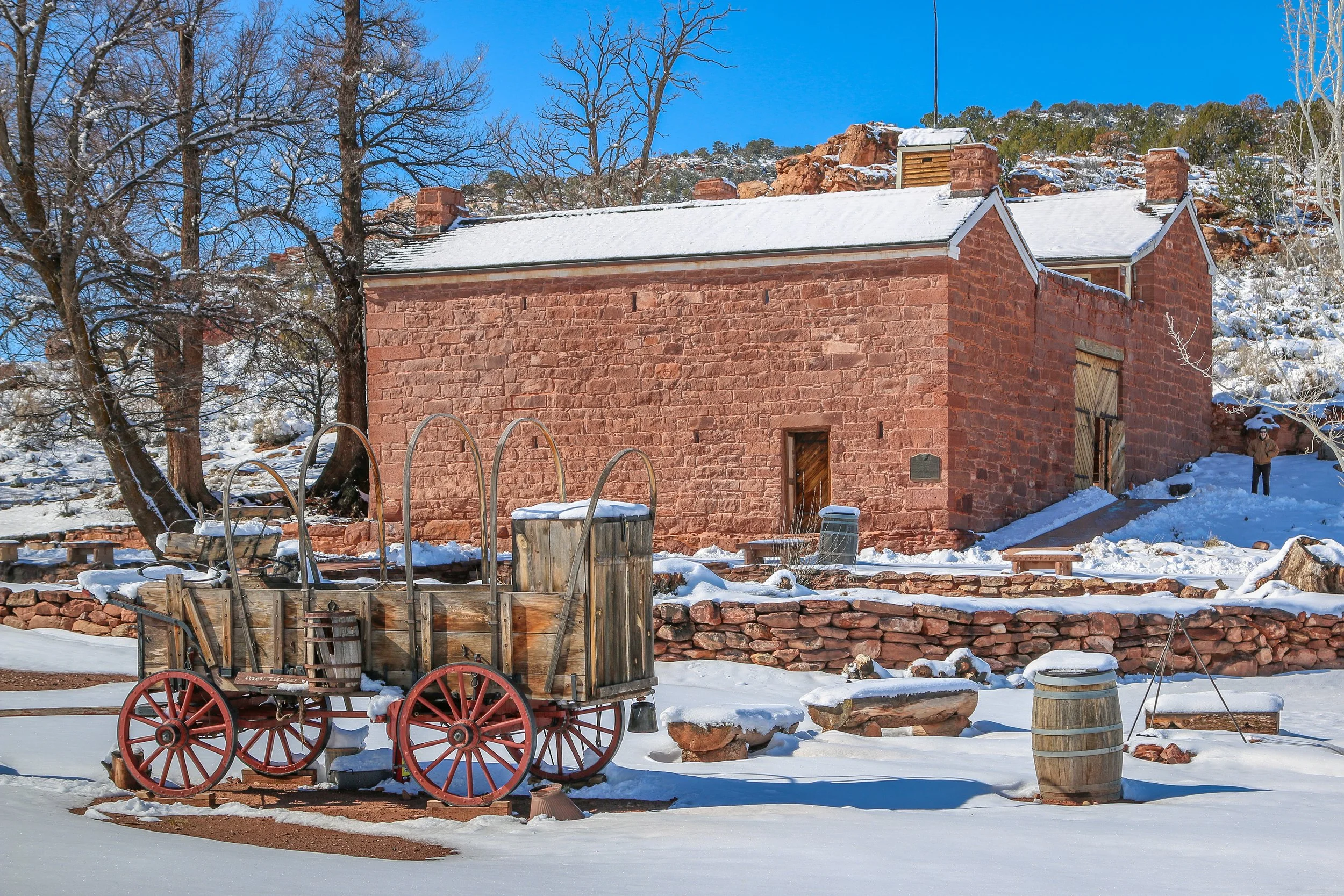 During the time I was in the museum, it started to snow and by the time I left it was really coming down. I walked around for a little while, but there wasn’t much to see except for a few old foundations as all of the wood had been scavenged for other buildings in other towns. When I left Silver Reef, I headed down the road to Hurricane (pronounced “Her-a-kun”) which got its name when Mormon Apostle Erastus Snow was on his way from Virgin City to St. George and a wind came up and blew the top off of his buggy. He named the hill he was on Hurricane Hill and the name stuck. It was still snowing pretty hard when I got to town, so I tucked into the library for the rest of the day. In the evening I went and got an ice cream at the local Dairy Queen and hung out in a nice warm booth, reading my book for a while before calling it a night.