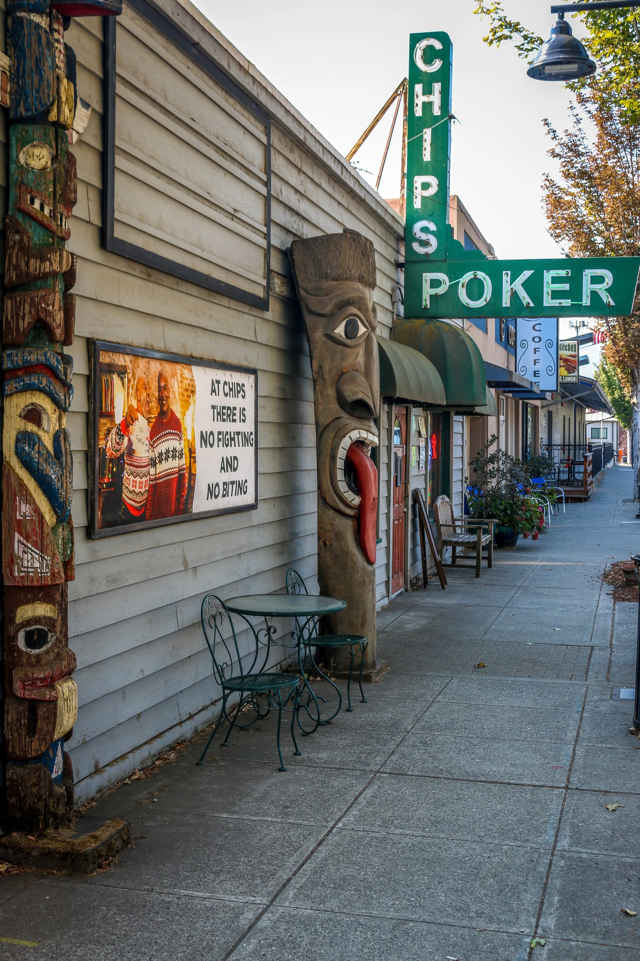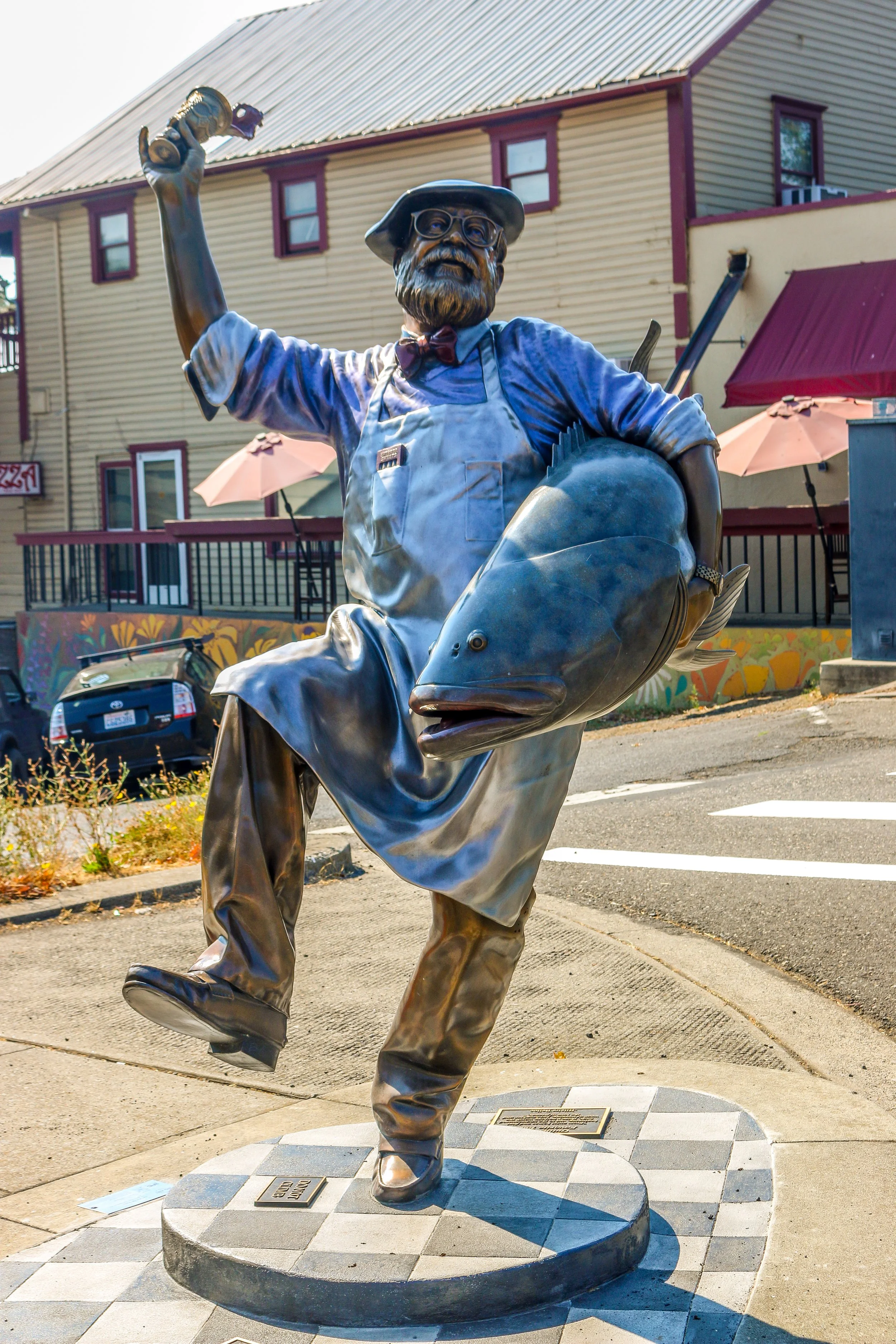 The bridge there in Hood River is quite nerve wracking to cross as it is very narrow and the metal guardrails on either side have obviously been hit hundreds of times or more the entire way across. Bridges don’t generally make me nervous, but this one did. Right on the other side of the river was a little tourist information center (and a must-stop Welcome to Washington sign for this post), so I pulled in to take a photo and say hello. The lady in the Visitor Center couldn’t have been any nicer. She was born and raised in the area and told me that when she moved away she couldn’t wait to get back. She was a perfect representative of the communities on the Washington side of the gorge and helped with all of my questions, throwing in some stories of her own for good measure. She told me that the bridge I had just crossed was privately owned, hence the poor condition it was in. She also told me that it wasn’t very structurally sound and I was glad I wasn’t going back over it any time soon. When I asked her if it was always that hot in the beginning of September, she told me it was chilly for that time of year and motioned to her jeans and her sweater. That made me smile and, feeling a little better about the day, I decided to pop up the hill and check out the town of White Salmon at the top. White Salmon was small and charming and a big contrast to Hood River just across the bridge. I had a wonderful walk around town, taking some photos and enjoying its quirks (I especially loved that many of the crosswalks were actually painted with white salmon crossing the road). I stopped in the bakery for a snack and my mood was starting to take a real turn for the better. After wandering around town for a while, I headed down the hill and came into the neighboring town of Bingen. I was surprised that they were separate towns given how close they were and how small each of them was. It turns out that the rivalry goes back to the towns’ respective founding families, the Sukdorfs of Bingen and the Jewetts of White Salmon who were bitter enemies. I believe the towns are on better terms today, but I’ll bet their sports teams are still healthy rivals. Bingen had some neat little places to see as well and I especially loved a statue called “Oh Joy of Joys” which was a tribute to a beloved member of their community, Guillermo "Willy" Fisch. Willy had been born in Argentina and after years of traveling the world settled in tiny Bingen, Washington. He was apparently so well liked that he was often referred to as “Bingen’s Second Mayor”. I would be over the moon if a statue as joyous as this one was ever made of me and I’m sure Willy is out there somewhere smiling about it. I also stopped into Chips Tavern which was a perfect little neighborhood bar with lots of great old news stories and photos on the wall to keep me busy.